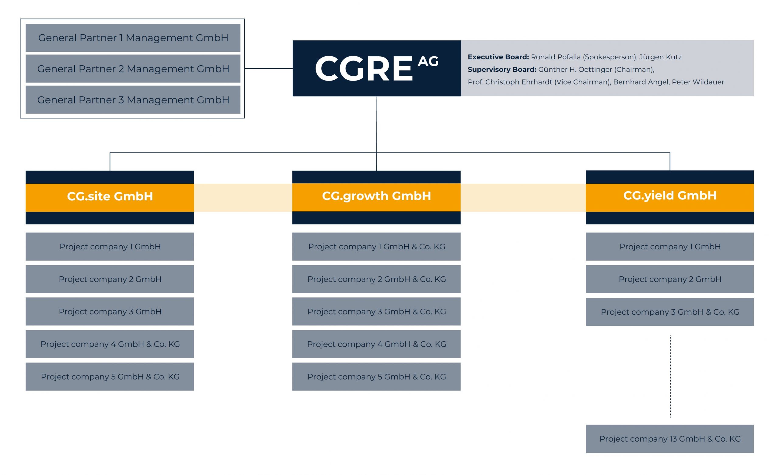 Through cooperation with other significant market participants, CGRE AG creates ideal conditions to be able to operate flexibly, reliably and efficiently on the German real estate and capital market, i.e. to acquire large construction and project developments and the necessary financing to structure and complete the construction work.