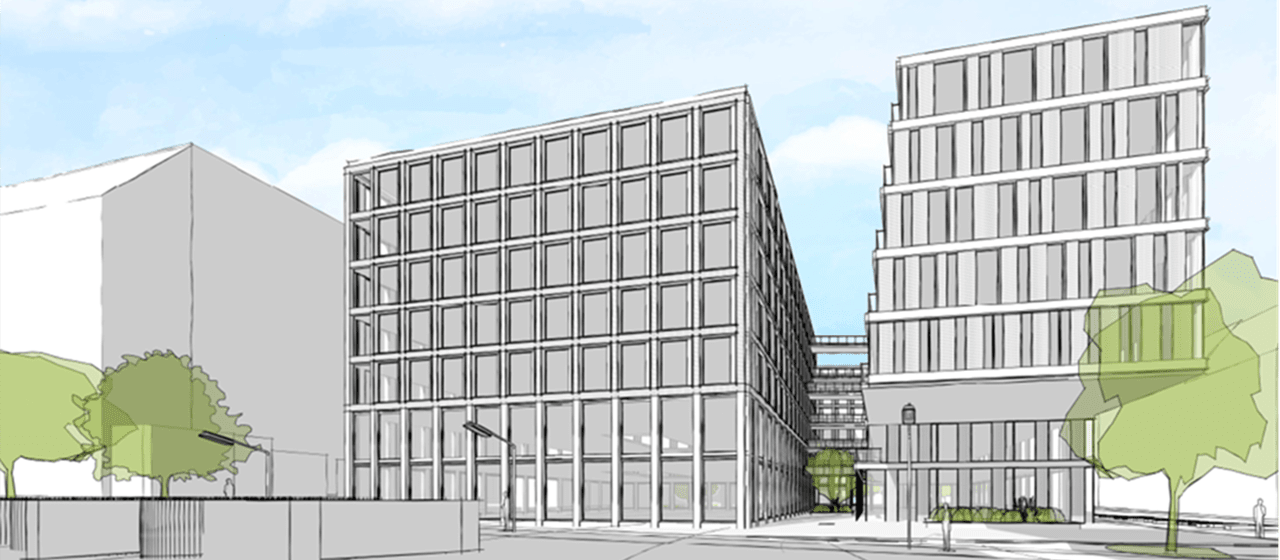 Das Neubauprojekt C6, gelegen im Quartier C der Plagwitzer Höfe, besteht aus einem Bürogebäude und einem angrenzenden Parkhaus. Das Bürogebäude verfügt über ein barrierefreies Erdgeschoss für Gewerbe und drei Regelgeschosse für Büros. Es bietet zukünftigen Büro- und Gewerbemieter:inneneine flexible Gestaltung des Grundrisses und viel Spielraum bei der Ausstattung.